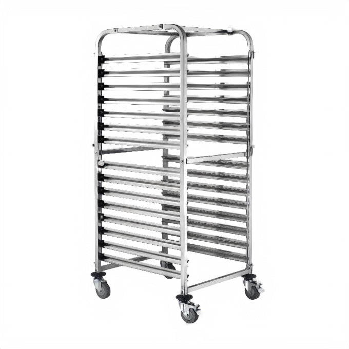 Carro profissional em aço inoxidável, concebido para transporte eficiente de tabuleiros, recipientes e material em cozinhas profissionais, pastelarias e áreas de serviço. Estrutura robusta, adequada a utilização intensiva, com rodas que facilitam a mobilidade e a organização dos fluxos de trabalho. Disponível em versão compatível com GN 1/1 como solução mais económica ou compatível com GN 2/1 como opção intermédia para maior capacidade de carga.