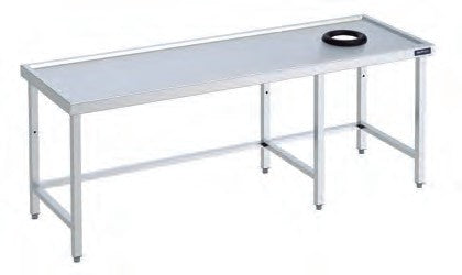 Mesa com aro de descarga de resíduos e prateleira